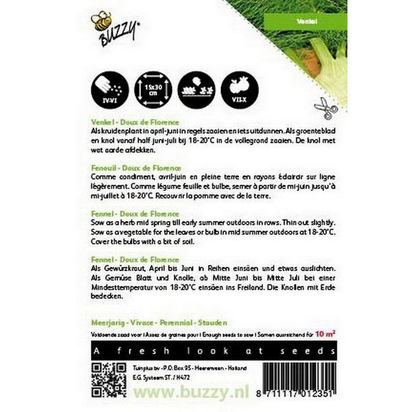 Wij zijn benieuwd naar uw mening! Schrijf een recensie over het artikel "Buzzy® Venkel De Florence" en maak kans op een Nationale Tuinbon ter waarde van € 25,- !