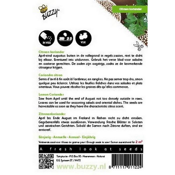 Wij zijn benieuwd naar uw mening! Schrijf een recensie over het artikel "Buzzy® Koriander Citroen laag" en maak kans op een Nationale Tuinbon ter waarde van € 25,- !
