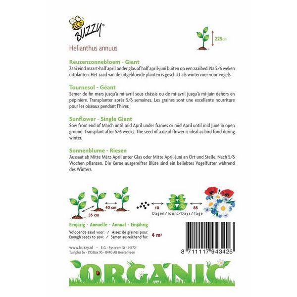 Schrijf zelf een recensie over "Buzzy® Organic Helianthus, Reuzenzonnebloem giganteus (BIO)"