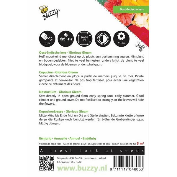 Schrijf zelf een recensie over "Buzzy® Tropaeolum, Oost-Indische kers Glorious Gleam"
