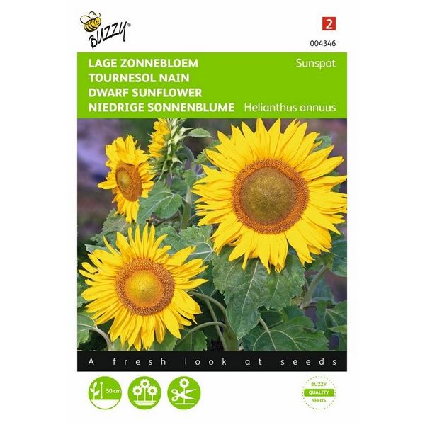 Bent u op zoek naar Buzzy® Helianthus, lage zonnebloem Sunspot geel? Bij Tuindorado, met drie vestigingen in Friesland bent u aan het juiste adres voor uw Buzzy® Helianthus, lage zonnebloem Sunspot geel. Tuindorado heeft vestigingen in Drachten, Wolvega en Gorredijk. U kunt het artikel "Buzzy® Helianthus, lage zonnebloem Sunspot geel" online bestellen op de webshop. Wilt u weten wanneer wij open zijn? Bekijk dan het overzicht van openingstijden & koopzondagen.