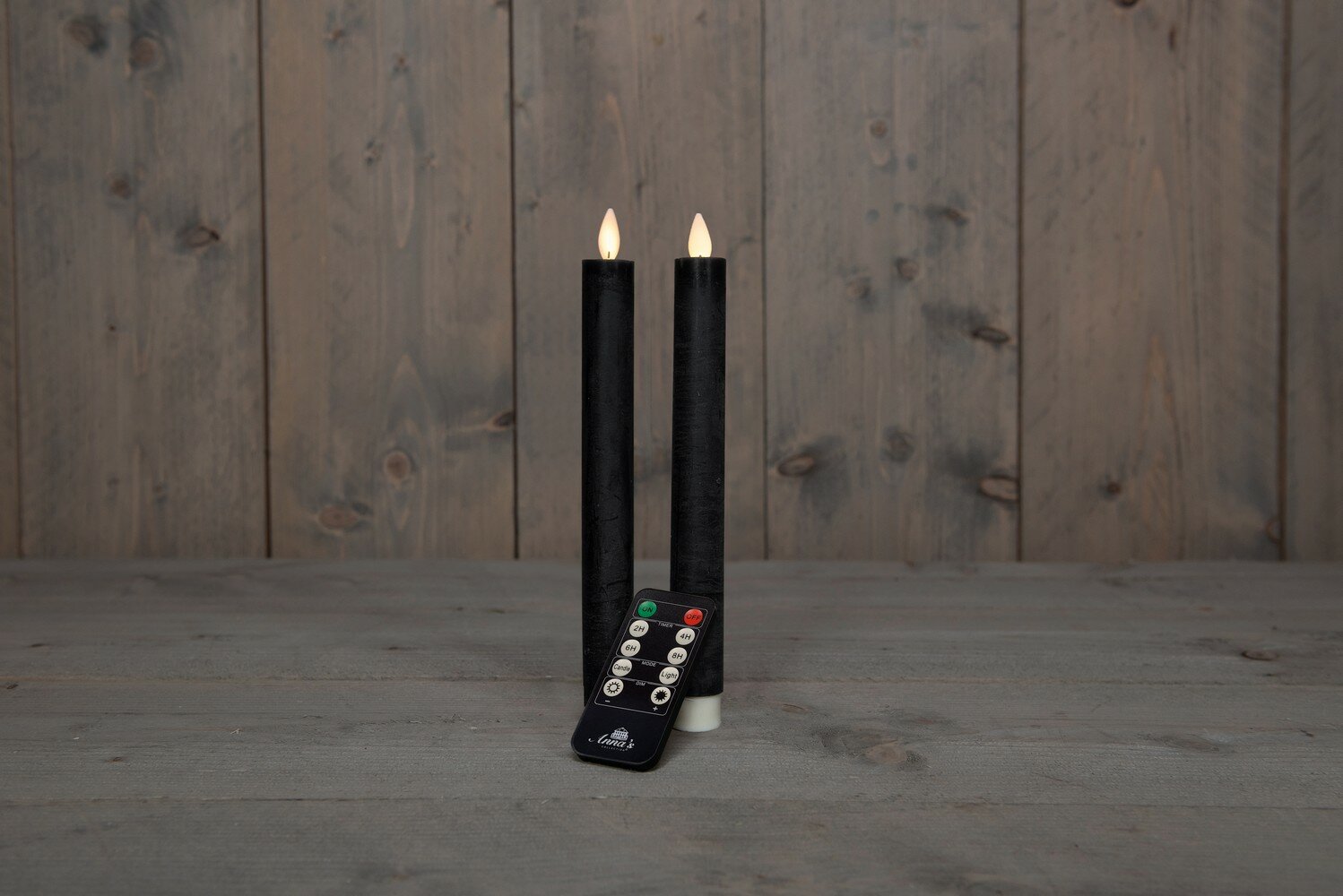Schrijf zelf een recensie over "B.O. 2ST ZWART RUSTIEK WAX DINERKAARS 23CM BEWEGENDE VLAM ME"