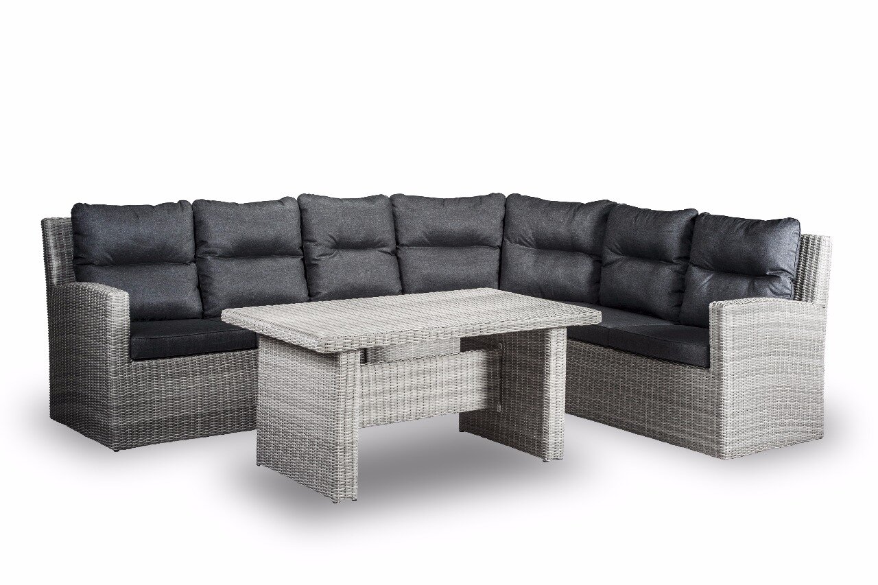 De Own Living Limoges hoekset , Misty grey biedt luxe ontspanning in uw tuin. Deze set is met grijze kussens. Combineer kwaliteit, comfort en stijl met Own Living tuinmeubelen.