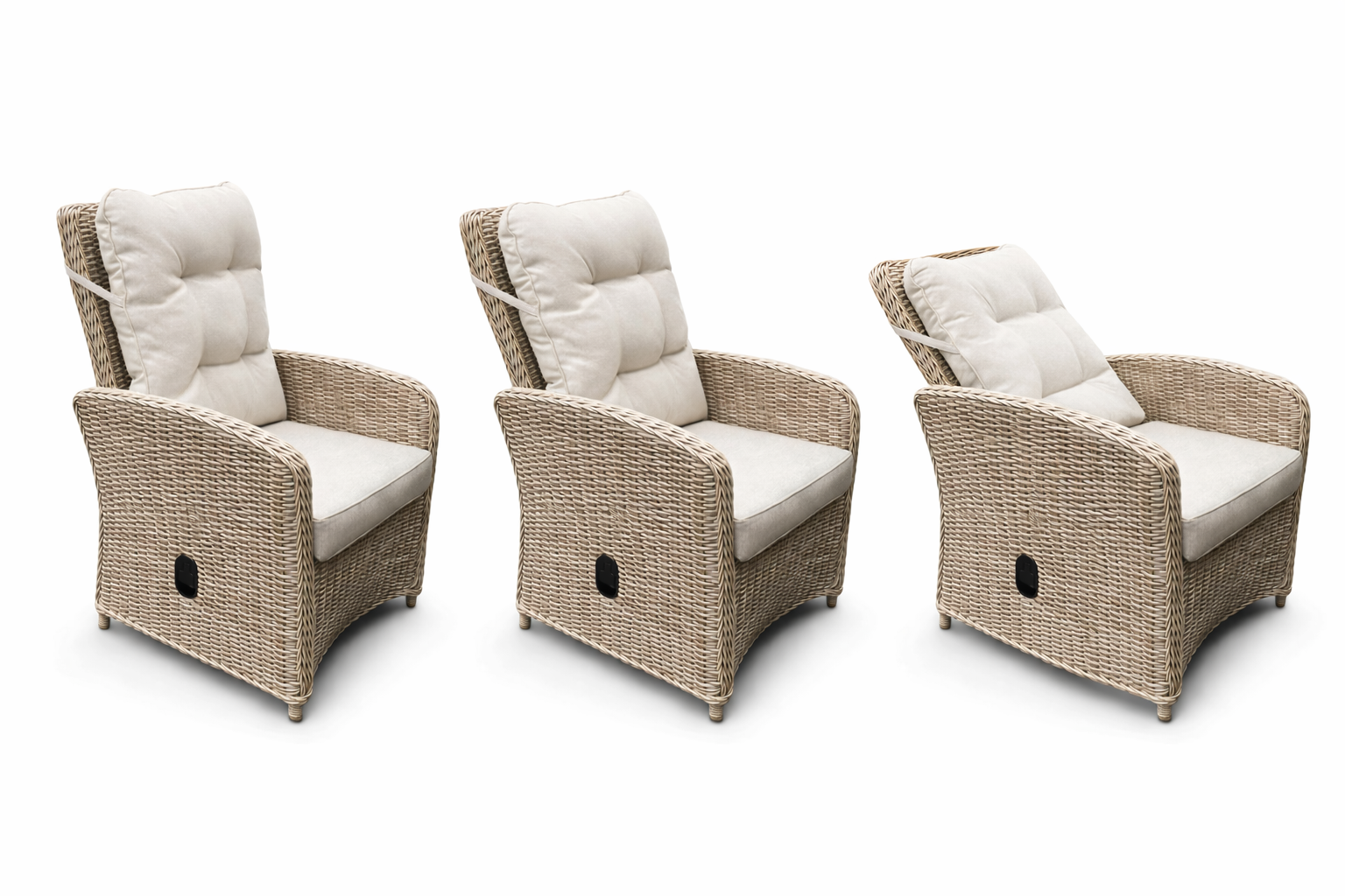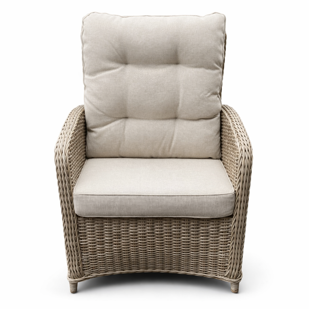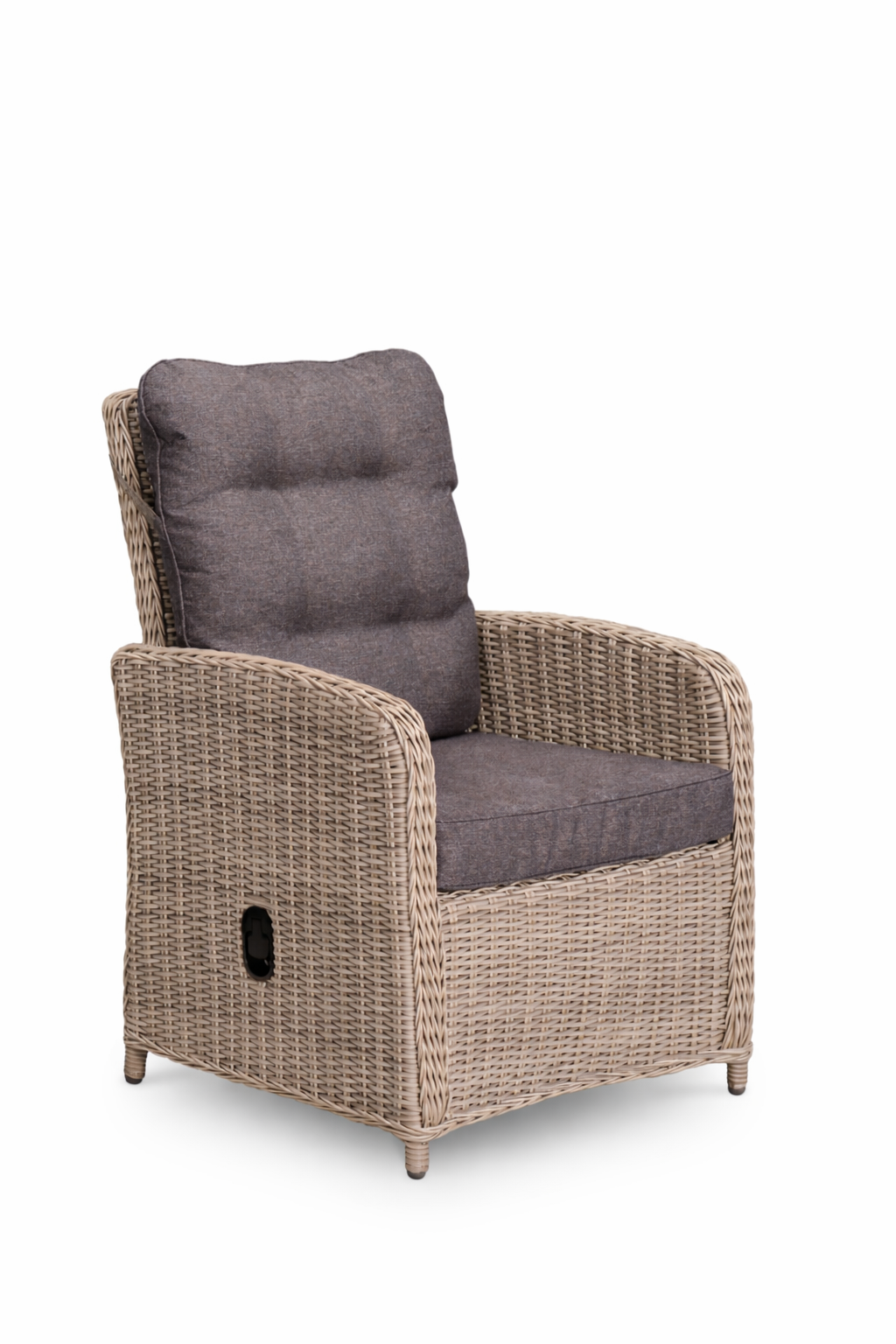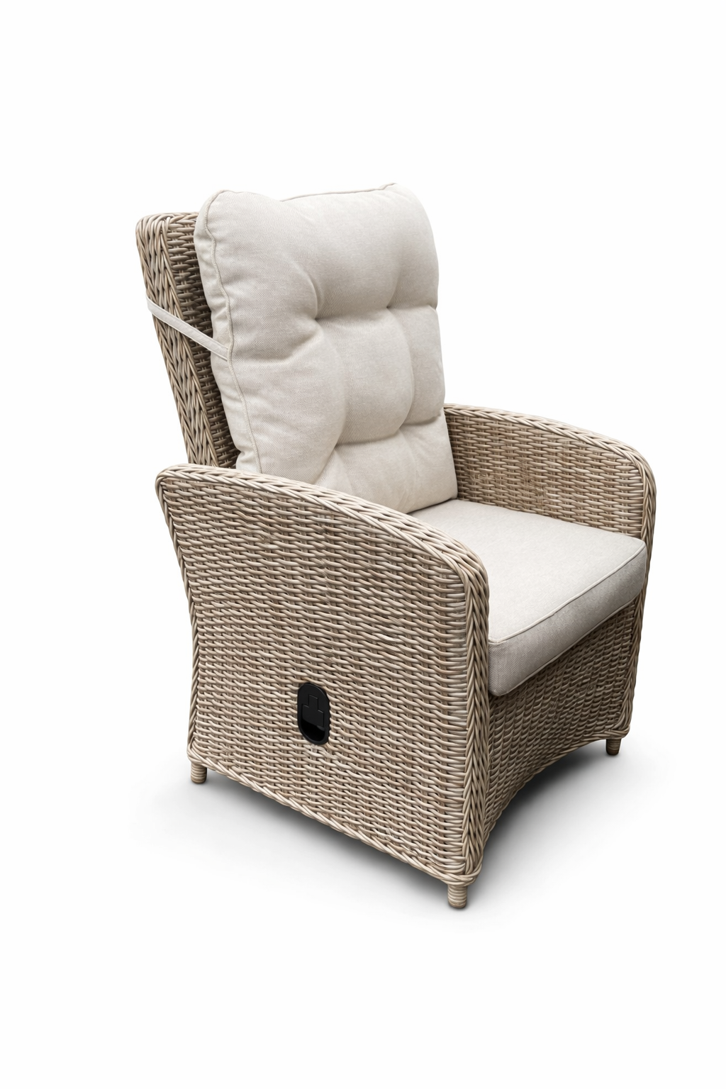 De Own Living Nevra dining stoel verstelbaar, Mexican sand biedt luxe ontspanning in uw tuin. Combineer kwaliteit, comfort en stijl met Own Living tuinmeubelen.
