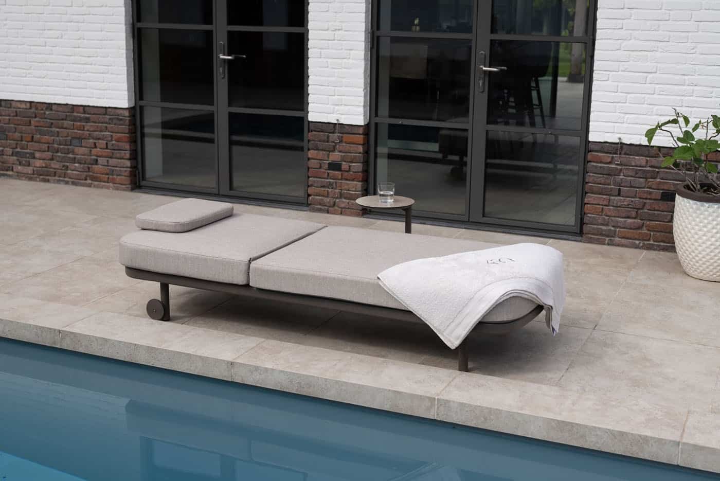 Het Milano ligbed van Taste 4SO is ontworpen voor ultiem relaxen. Het aluminium frame in Terre kleur en de meegeleverde kussen en hoofdsteun bieden comfort en ondersteuning.