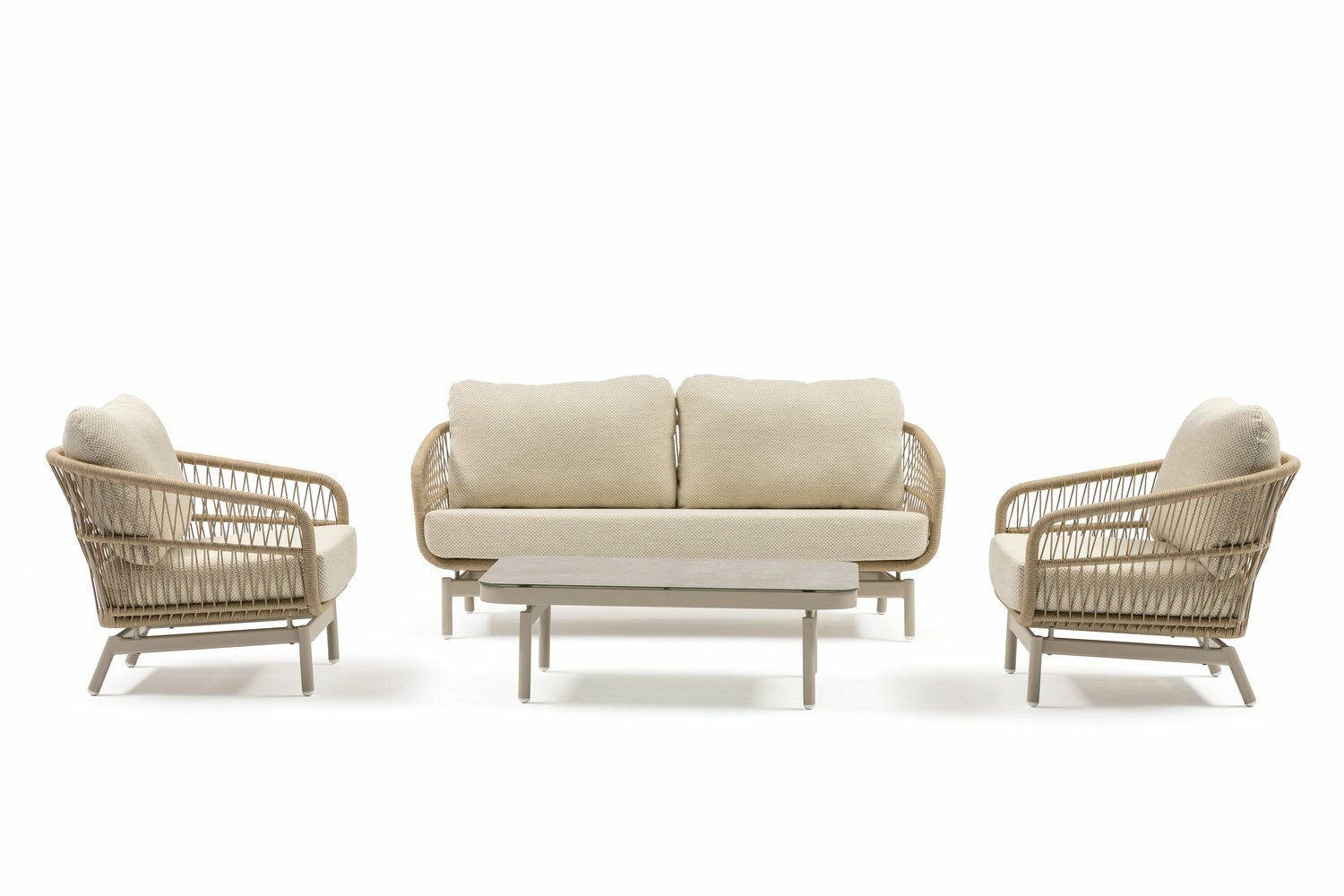 Stijlvolle loungeset met aluminium rope en comfortabele kussens voor ultiem buitencomfort.